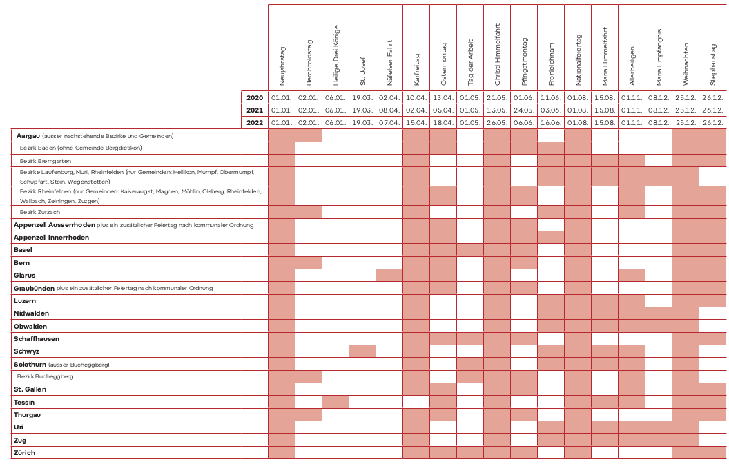 - 5. Tabelle der bezahlten Feiertage
