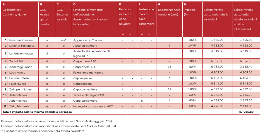 Fase di lavoro A: determinare i salari minimi individuali dei collaboratori.
