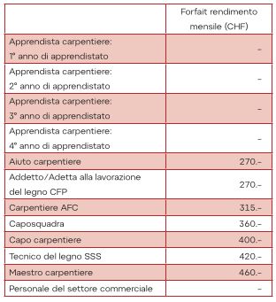Tabella salariale 2: determinazione del salario base nel modello con premio di produzione (in CHF)